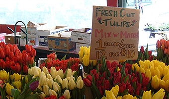 Six to 12 farmers bring their produce-filled wagons to Pike Place on opening day. They sell out by lunchtime.