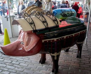 Artists decorate over 200 models of Rachel the piggybank for a citywide event, Pigs on Parade. They were later auctioned to fund the Market's social services.