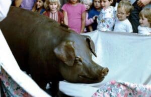Rachel the piggybank, which collects over $10,000 each year for the Market's child care, food bank, medical clinic and senior center, debuts.
