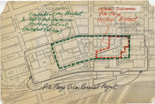 1.5 acres in Pike Place Market are listed on the National Register of Historic Places. A larger area is added to the historic district listing in 1972.