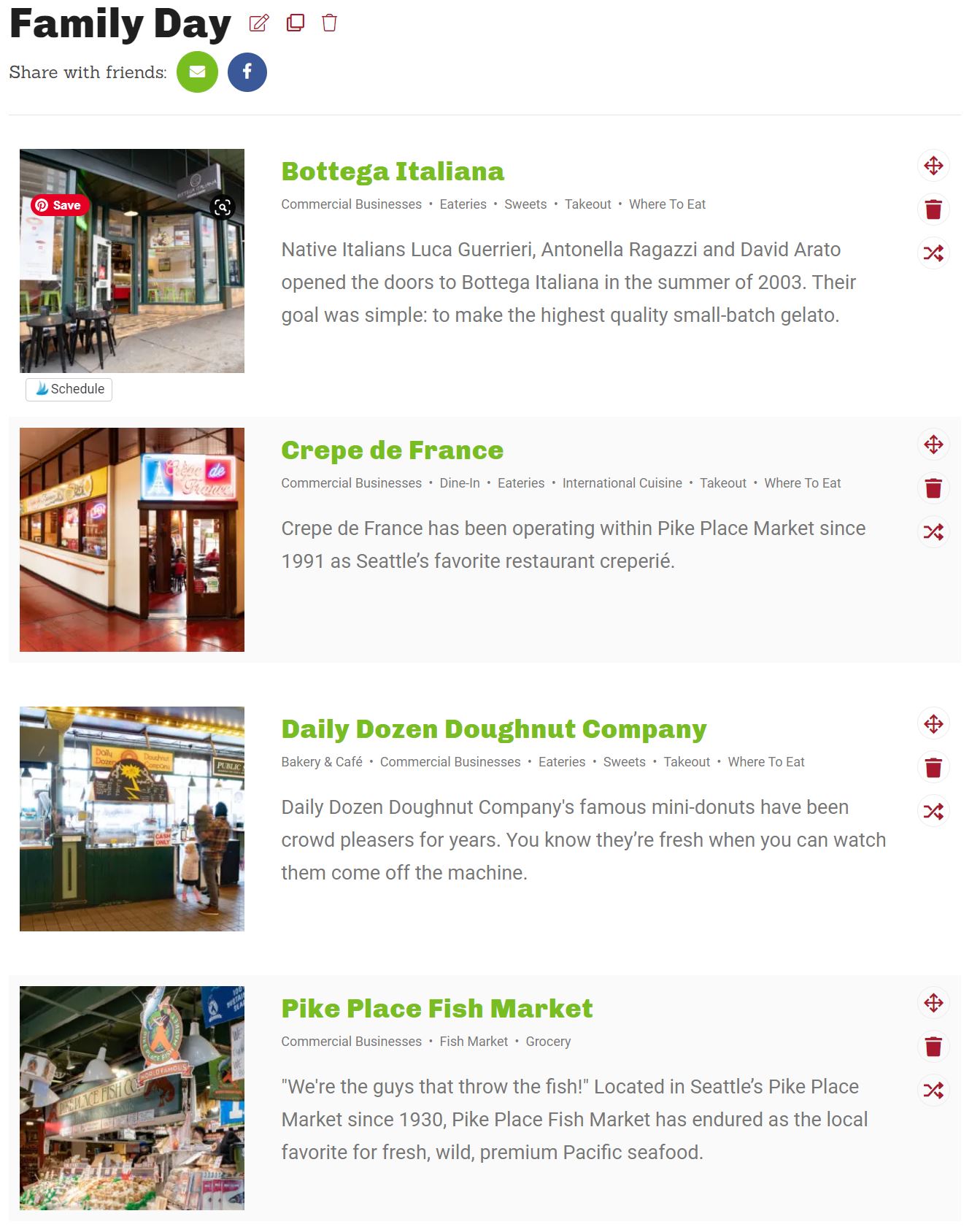 To help you discover all our 500 small businesses, we created a trip planner tool. With this tool, you can browse our Market Directory, adding businesses and Market attractions to your day. Then you can name, organize and share your Market days with friends and family. Start planning!