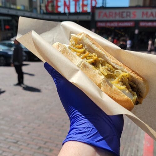 Silver Springs Creamery: Enjoy the best-grilled cheese sandwich in the Pacific Northwest! These sandwiches are made right in front of you using cheese from Silver Springs Creamery’s family-owned dairy in Lynden, Washington. Find Silver Springs Creamery set up Friday – Monday along Pike Place near City Fish Company.