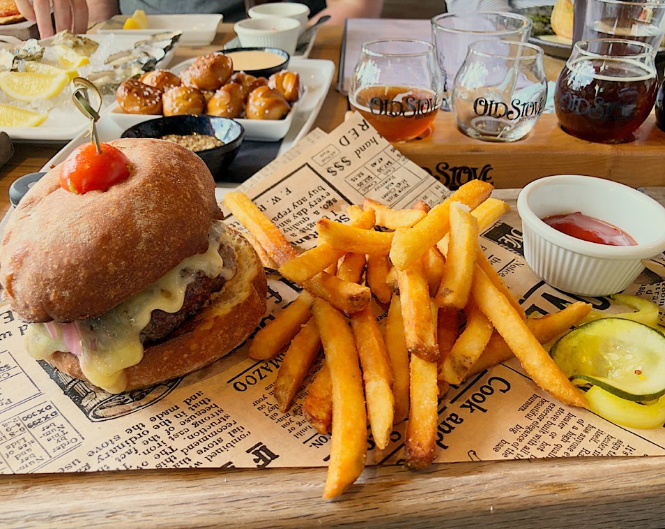 Old Stove Brewing: Where classic pub food meets an elevated from-scratch kitchen, Old Stove offers a warm, industrial ambiance with wood-fired pizzas, craft burgers, soups, salads and more alongside their 24 taps of rotating brews made on-site and viewable in the making from the dining area.