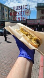 After yet another pivot, post pandemic, we introduced our version of a “World Famous Seattle Dog from a World Class Pickle Company. Same great pickled items, including our signature Cheese Bread Spread, all on a 100% all beef hot dog and steamed bun.